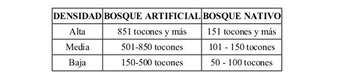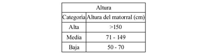 Nota: Para determinar la densidad correspondiente a mata barrosa (Mulinum spinosum), no se considerará altura.