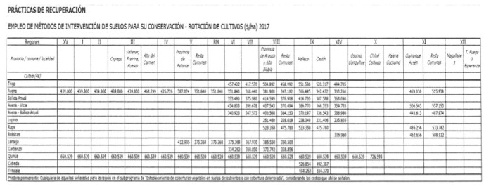 de recuperación en suelos deficitarios. El precio para la