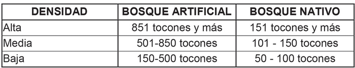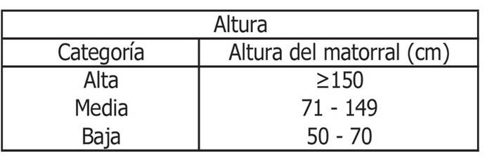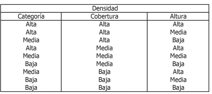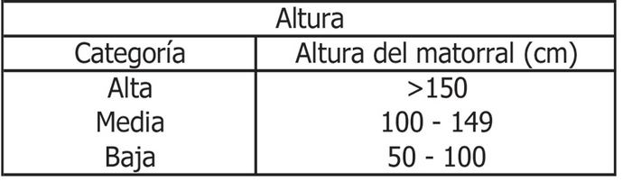 Nota: Para determinar la densidad correspondiente a mata barrosa (Mulinum spinosum), no se considerará altura.
