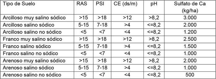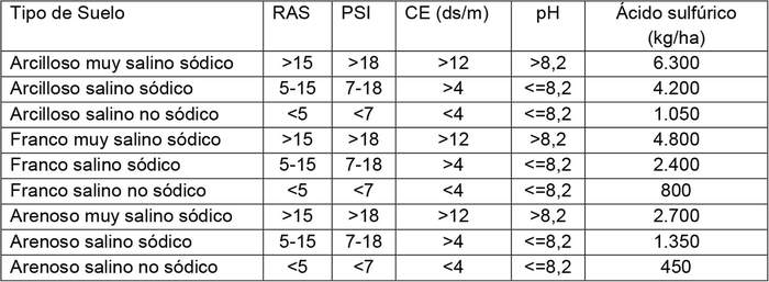 El material a utilizar como enmienda puede ser sulfato de calcio o ácido sulfúrico, según región.