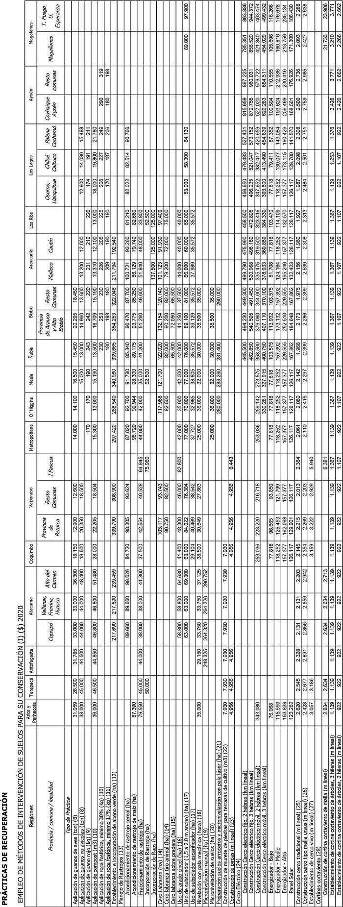 En las siguientes tablas se detallan las especificaciones por región y tipo de suelo.