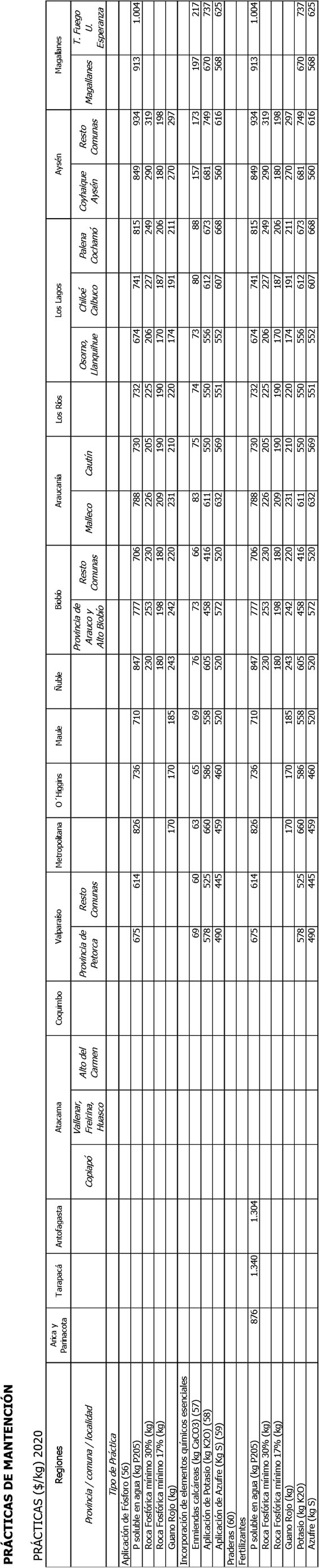 (1) Aplicación de fósforo (kg P2O 5): Tiene por objeto incentivar el uso de una dosis de fertilización fosforada de recuperación en suelos deficitarios. El precio para la unidad de fósforo (P) corresponde al valor del kg de P 2O 5 calculado sobre la base del precio de la unidad de fósforo más barata del mercado. El agricultor podrá emplear el fertilizante fosfatado (soluble en agua) que desee, no obstante, el valor de la unidad de P será siempre el definido en la tabla anual de costos.