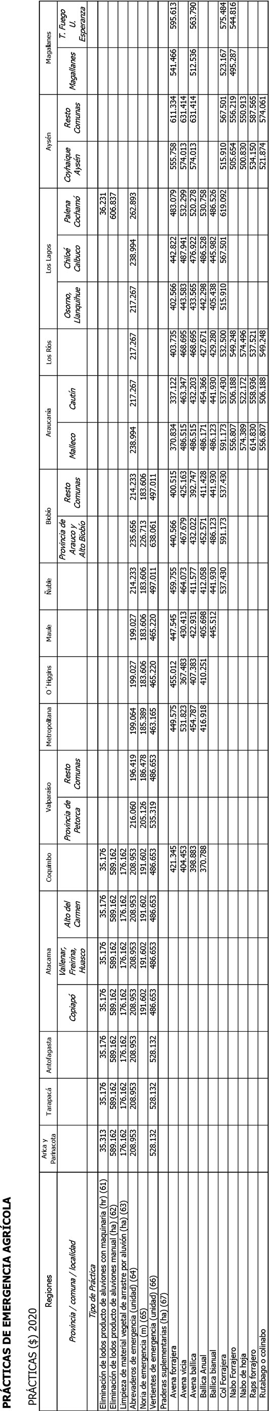 (62) Eliminación de lodos producto de aluviones manual (ha): Comprende el despeje y eliminación en forma manual de sedimentos de aproximadamente 30 cm sobre la superficie cultivable. Además, considera la eliminación de sedimento y despeje de los canales de regadío, nivelación del terreno y construcción de bordos.
