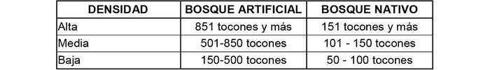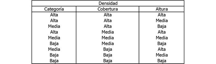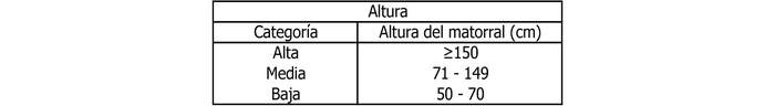Nota: Para determinar la densidad correspondiente a mata barrosa (Mulinum spinosum), no se considerará altura.