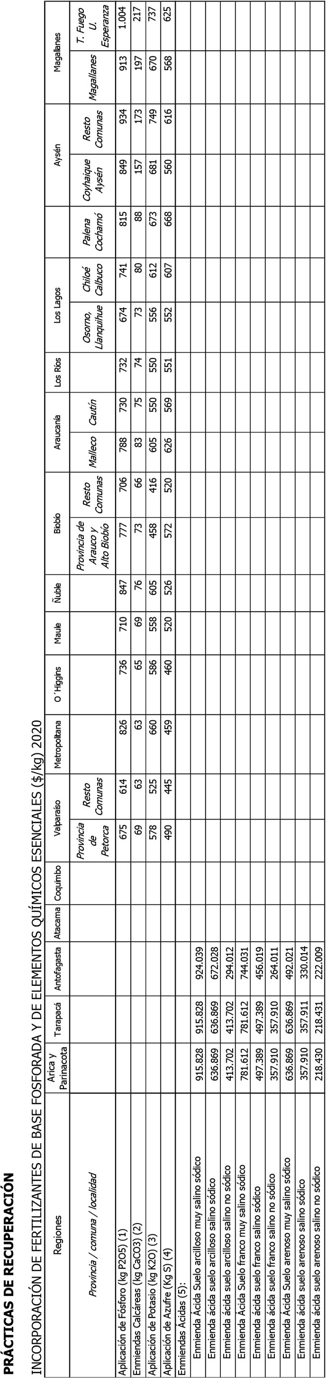 (9) Aplicación de guano rojo (kg): Se entiende por tal al producto formado por el excremento de aves marinas, fosilizado a través del tiempo en las costas del norte chileno, el que se aplica en dosis de hasta 1.000 kg/ha/año, destinada al mejoramiento de las propiedades físicas del suelo. Esta práctica sólo considera la bonificación del valor del producto.