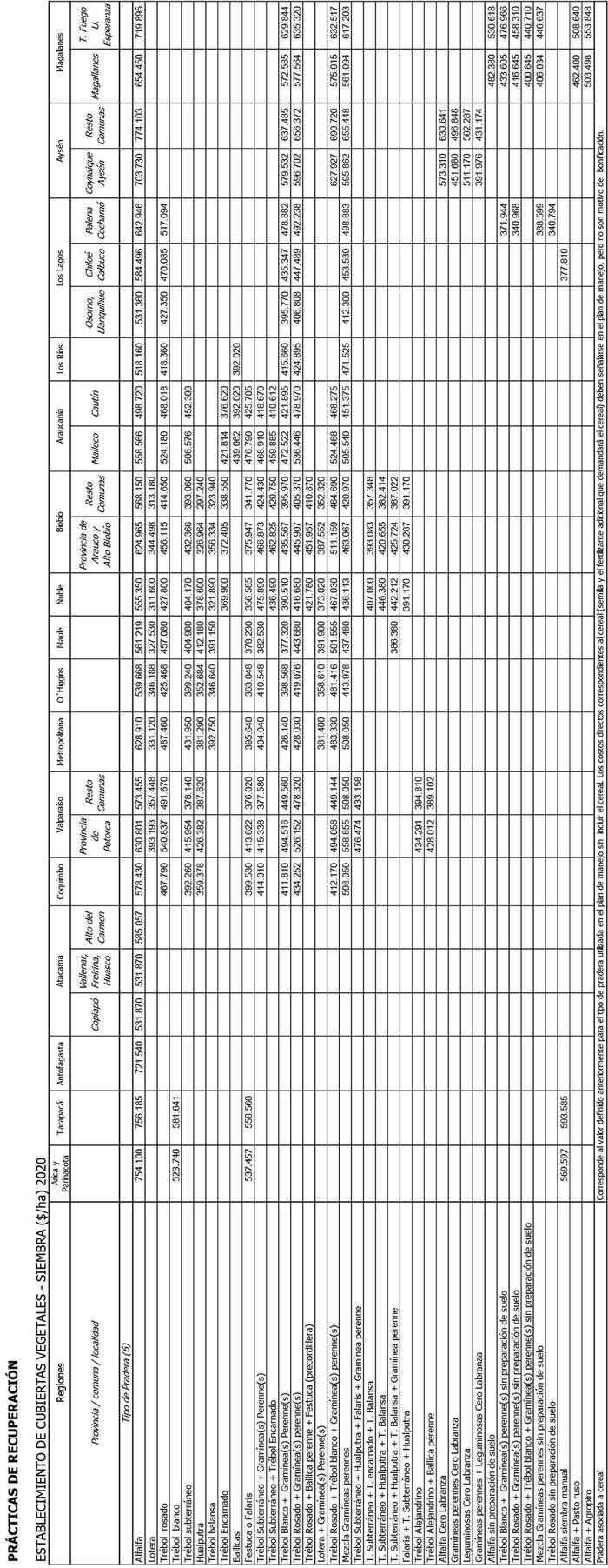 (15) Cero labranza sobre pradera (ha): Considera los costos derivados del herbicida y su aplicación, además de los costos relativos a la siembra (arriendo de maquinaria).