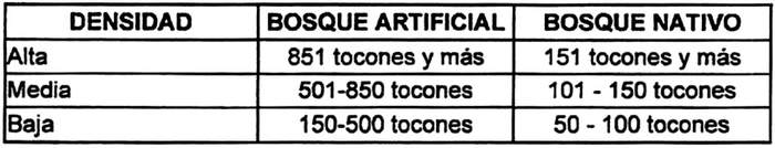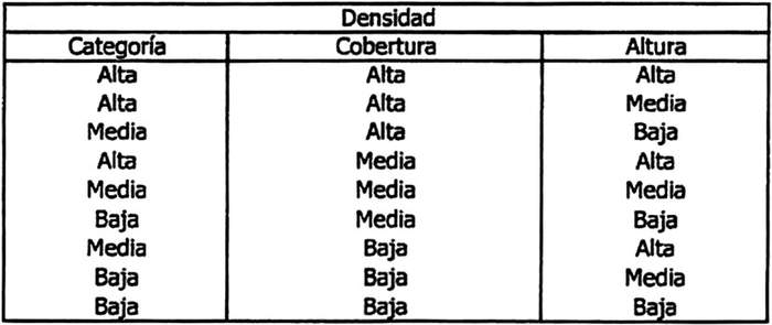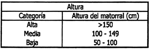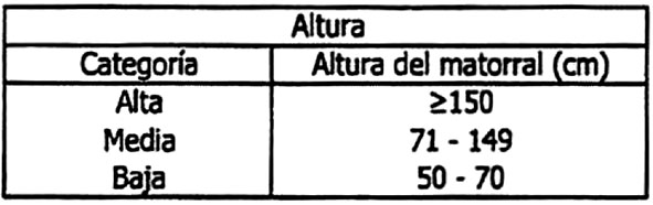 Nota: Para determinar la densidad correspondiente a mata barrosa (Mulinum spinosum), no se considerará altura.
