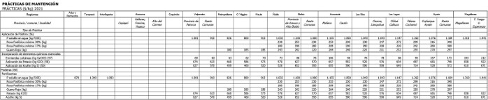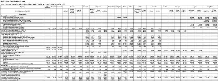 Subsolador escarificador (ha): Esta práctica considera una profundidad de trabajo entre 35 y 40 centímetros. Esta práctica se debe realizar en sentido perpendicular a la dirección de la pendiente. Esta práctica no es recomendable para suelos no estructurados.
