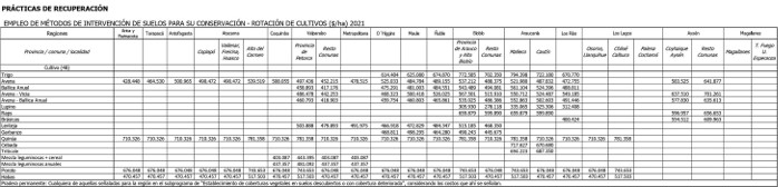 a. Acondicionamiento rastrojo de cereal (ha): Incluye gastos de fraccionamiento de rastrojo y aplicación de al menos 23 unidades de nitrógeno/ha para descomposición, excepto en la Región de Los Ríos y de Los Lagos donde deben ser al menos 35 unidades de nitrógeno/ha. En el caso de labranza tradicional, este valor también incluye los costos derivados de la incorporación del rastrojo al suelo y, en el caso de cero labranza incluye el hilerado de éstos. Esta práctica no es compatible con la práctica de "Fraccionamiento de rastrojo (ha)" ni la de "Incorporación de Rastrojo (ha)".