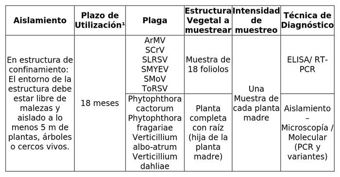 Tabla 3. Requisitos de fitosanitarios, de aislamiento y