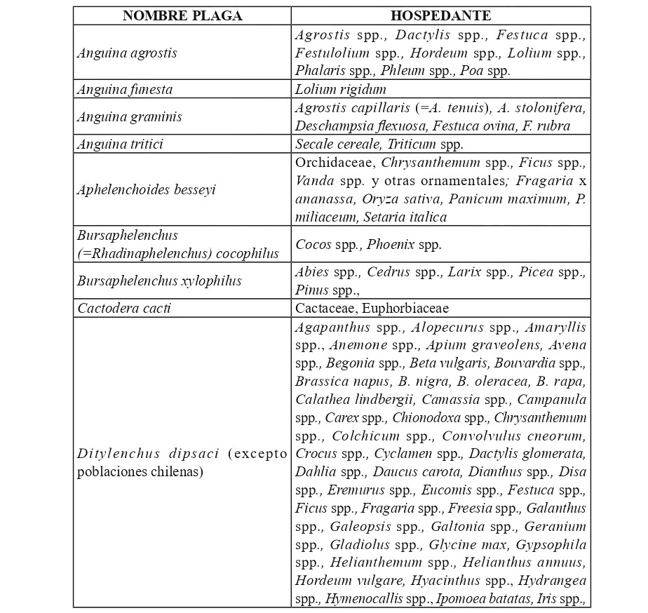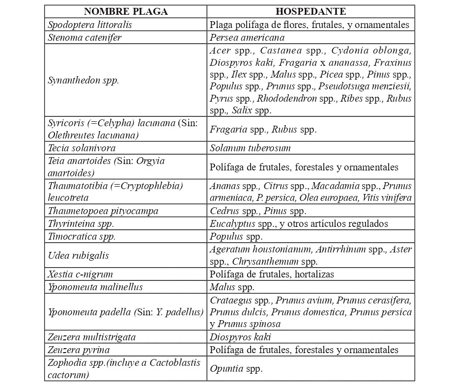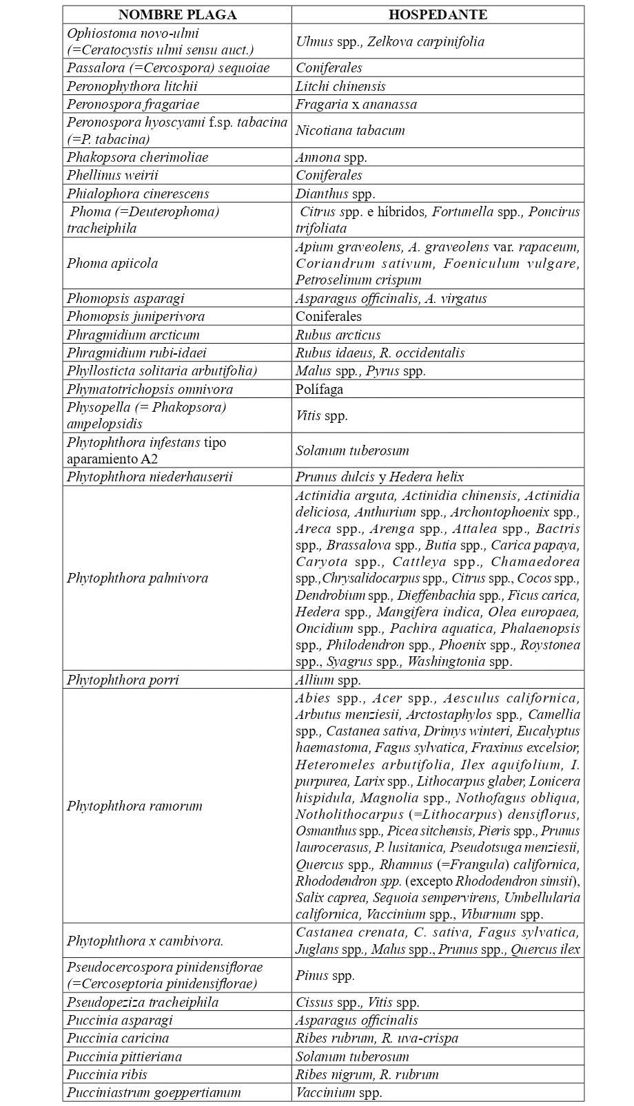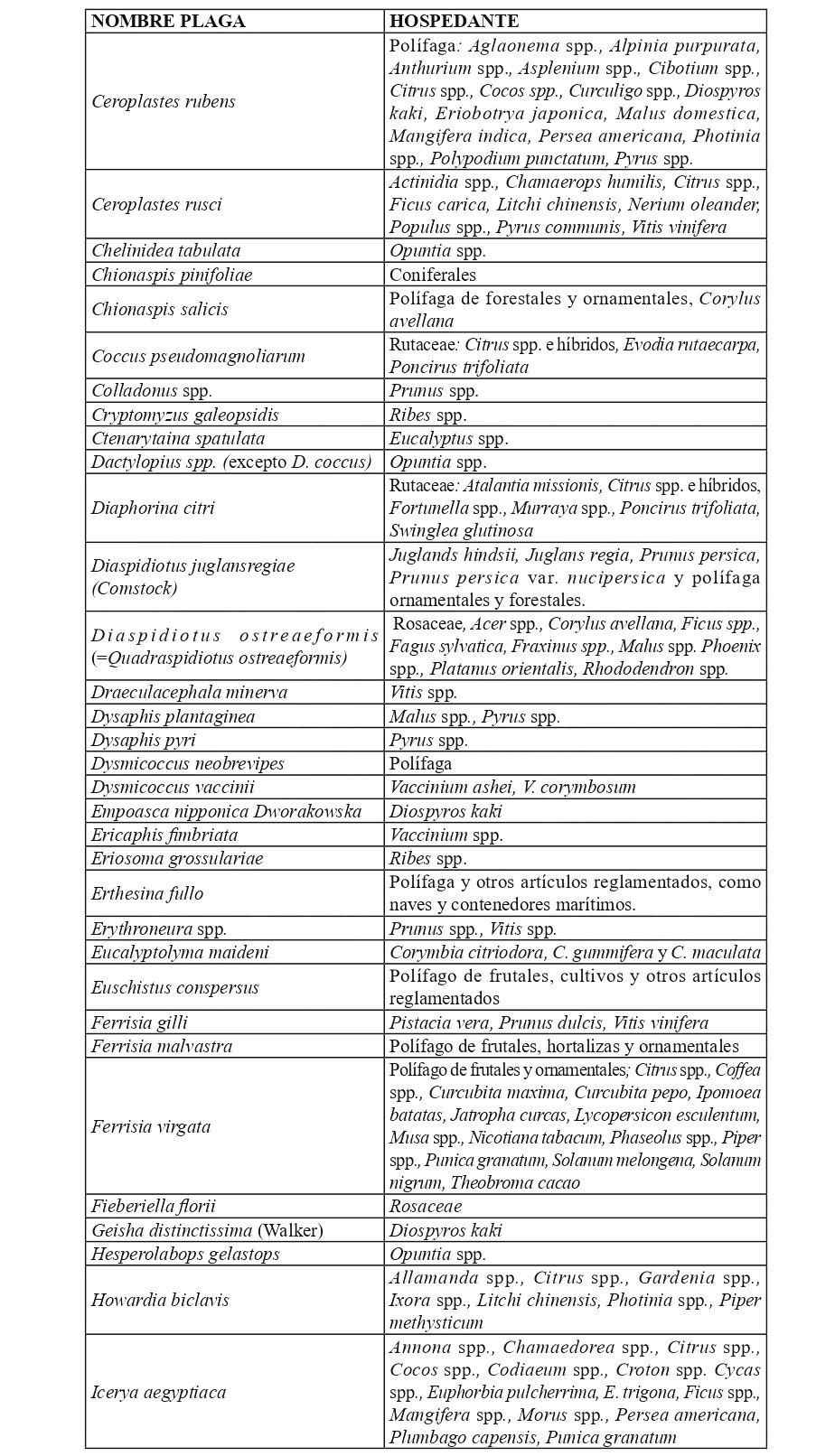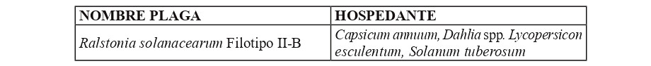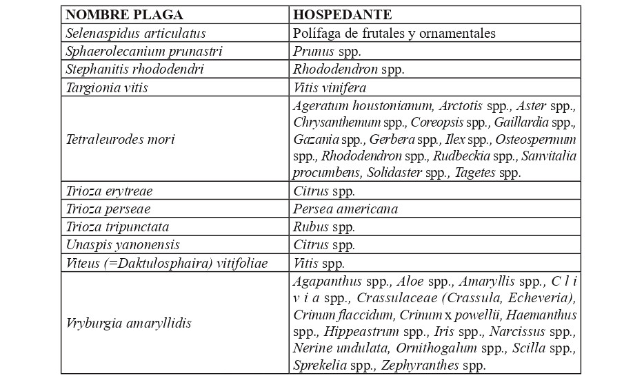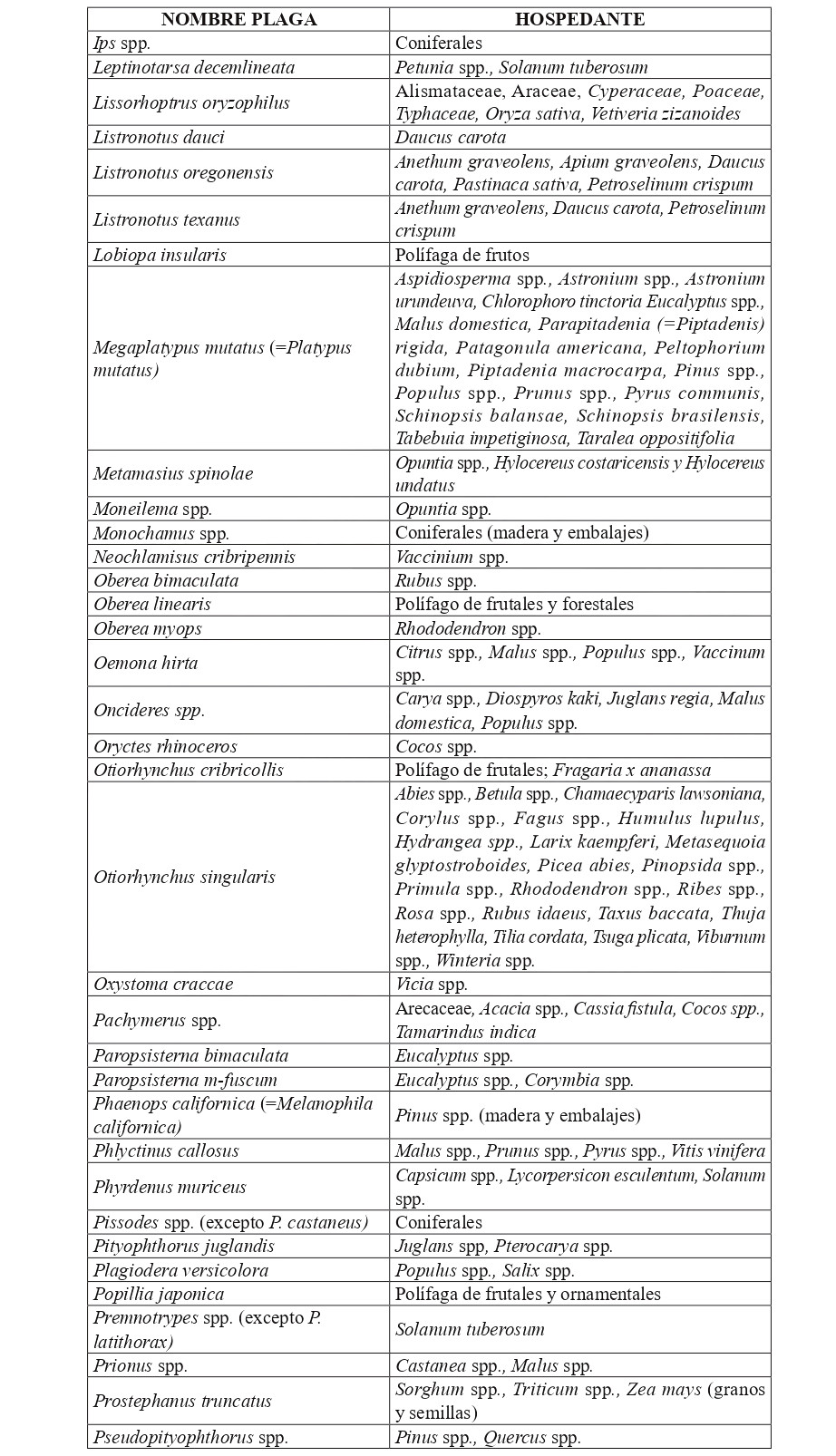 correspondiente a la lista de Plagas Cuarentenarias ausentes