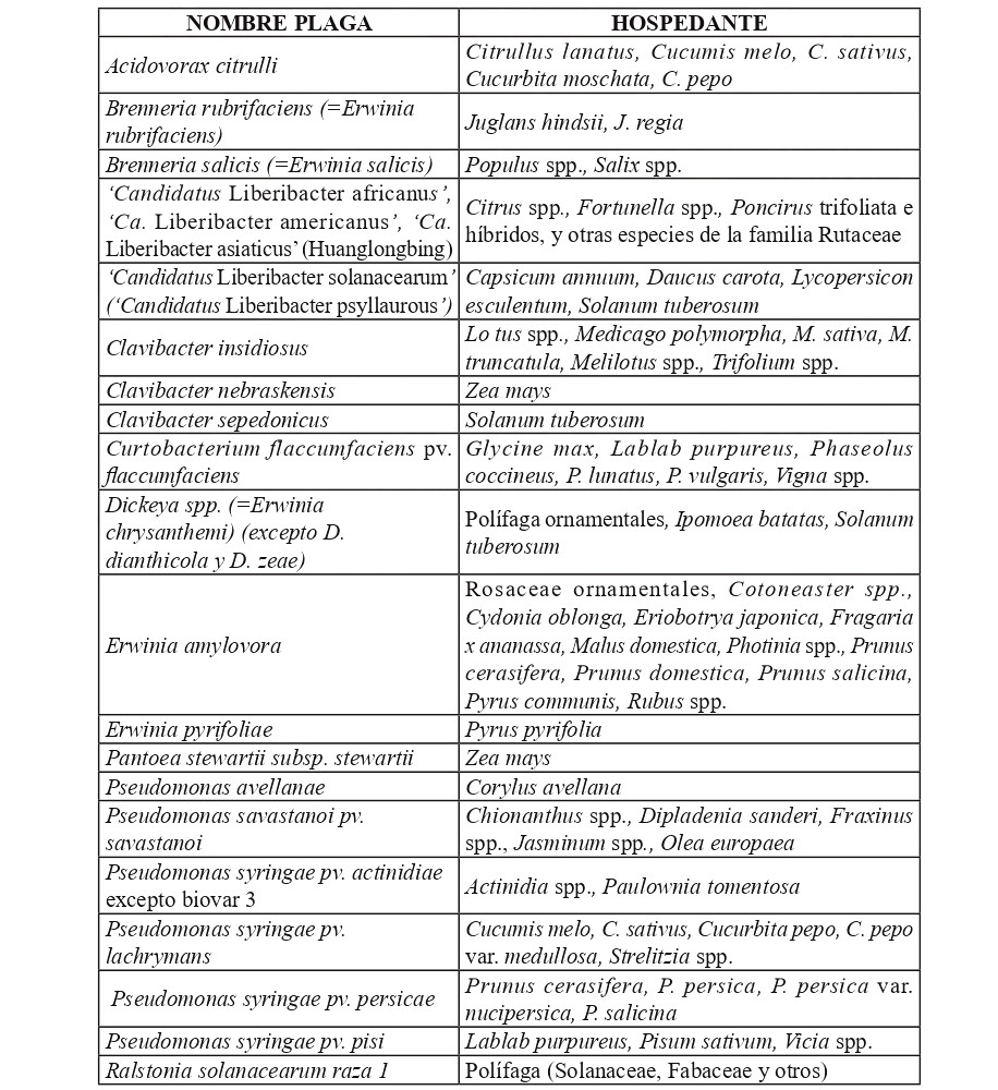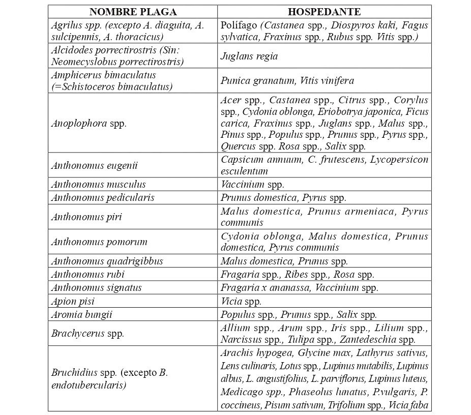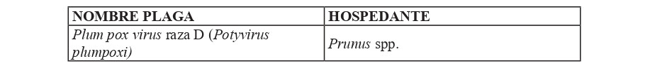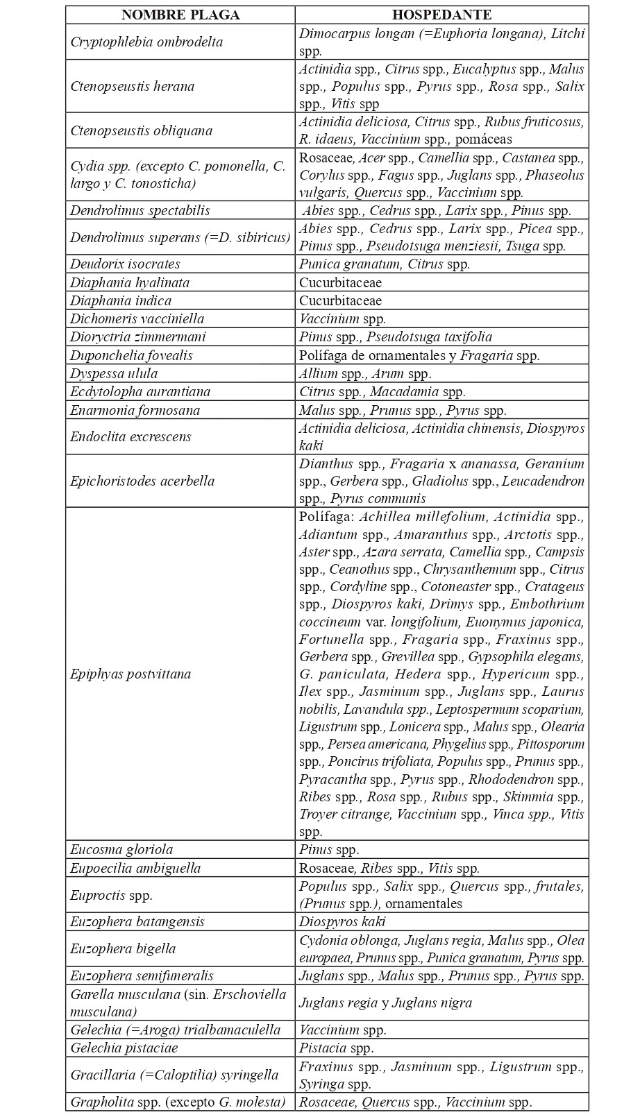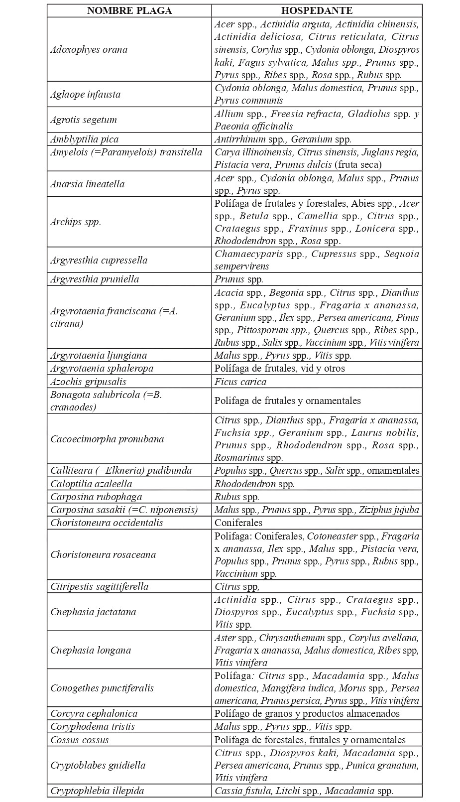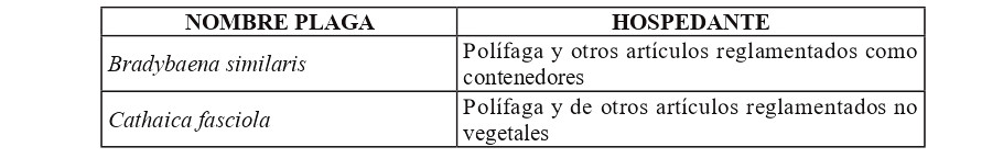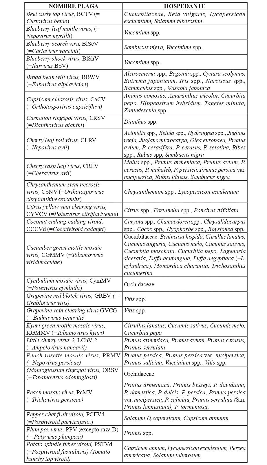 correspondiente a la lista de Plagas Cuarentenarias ausentes