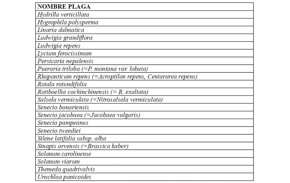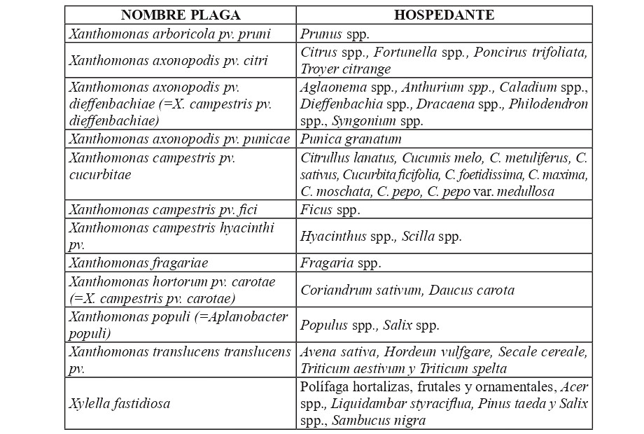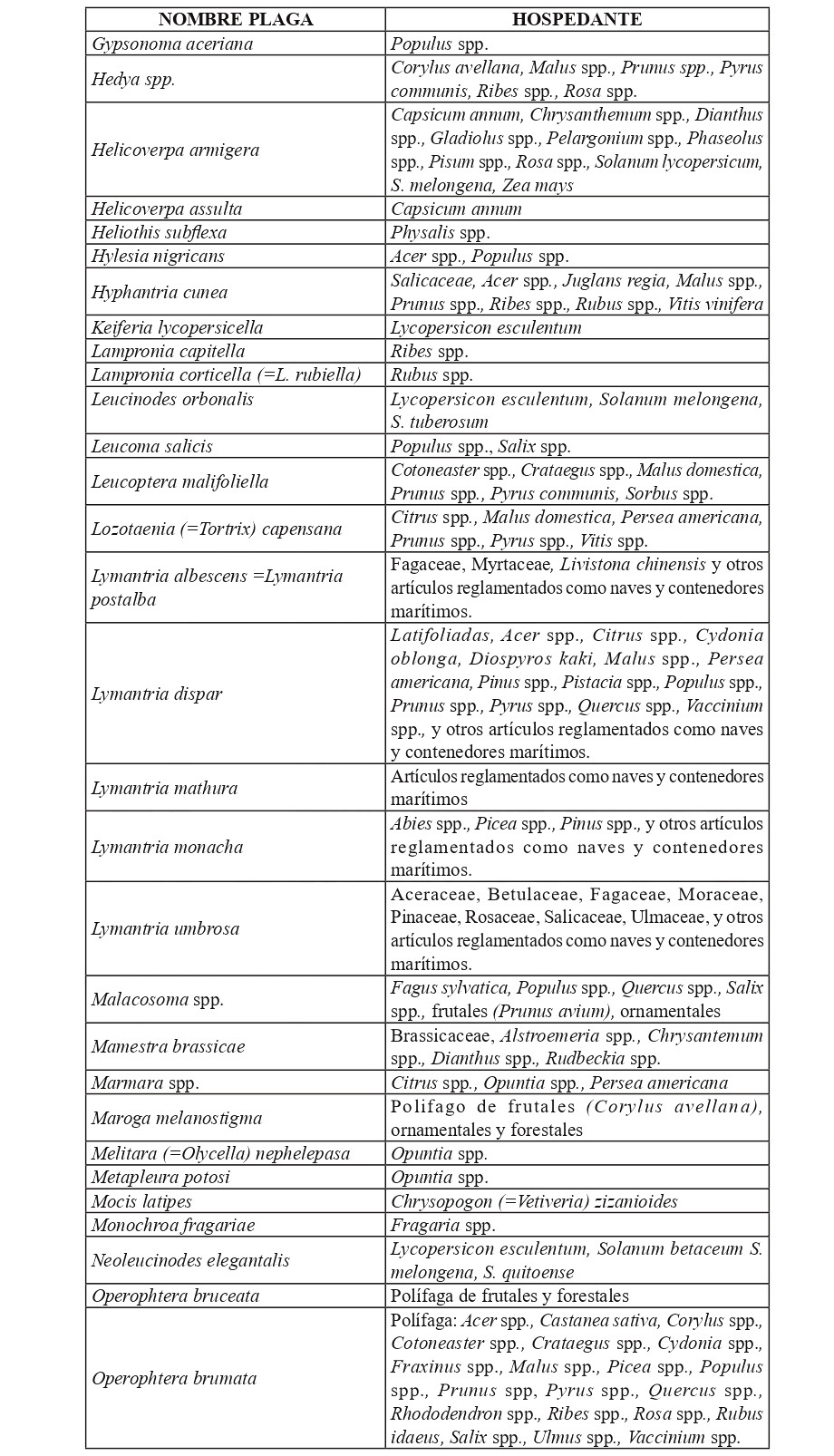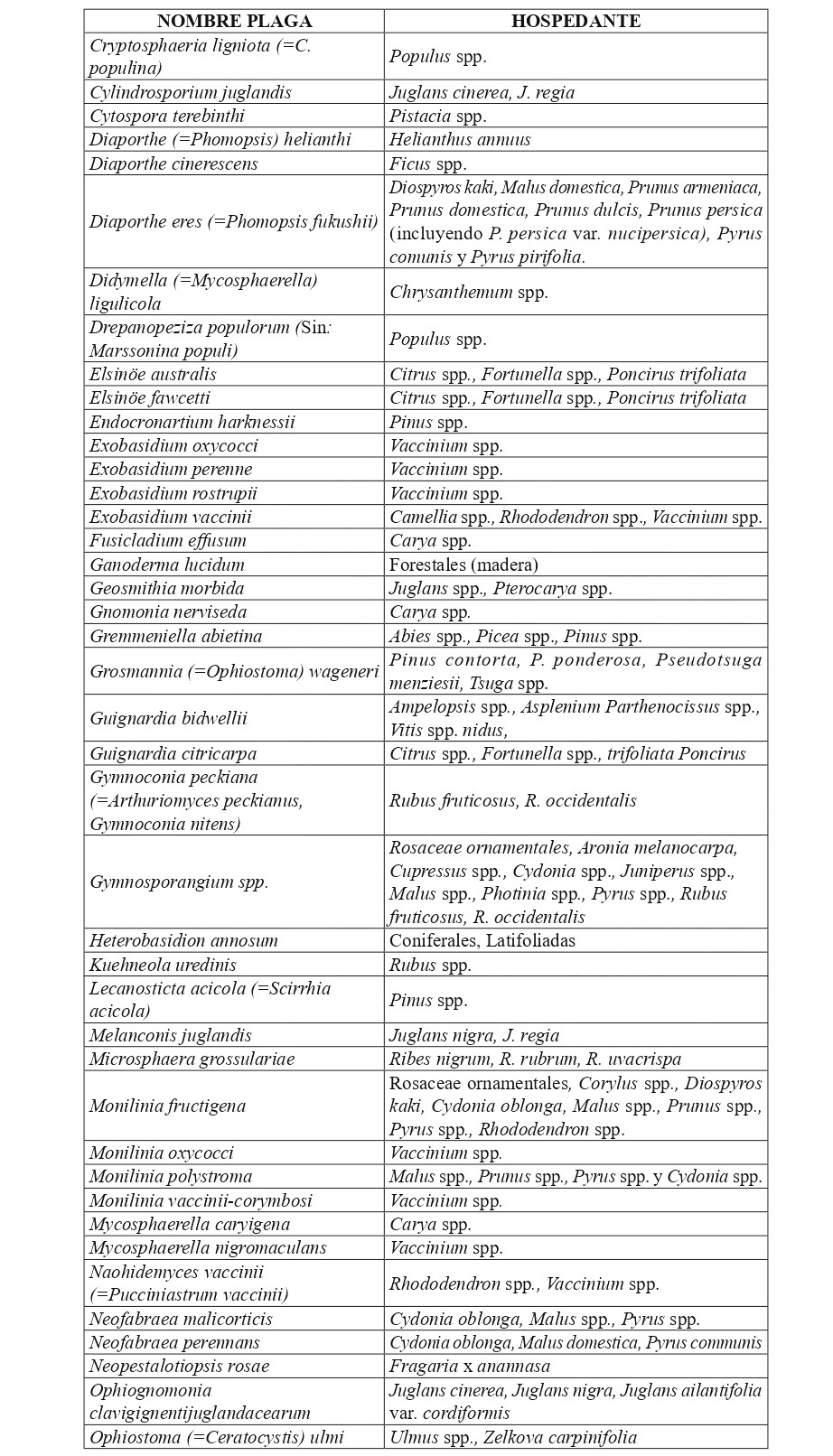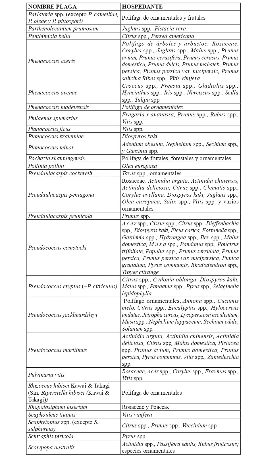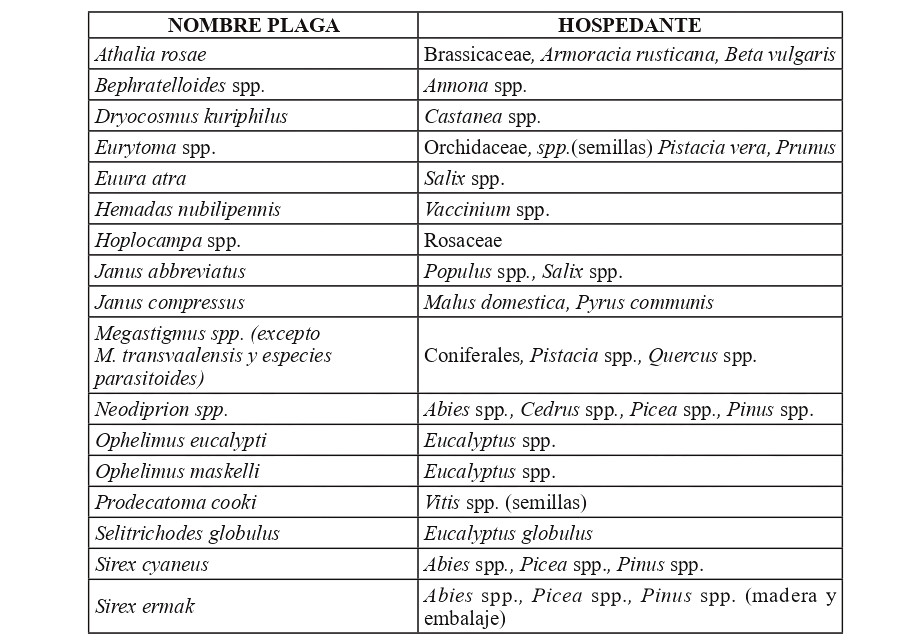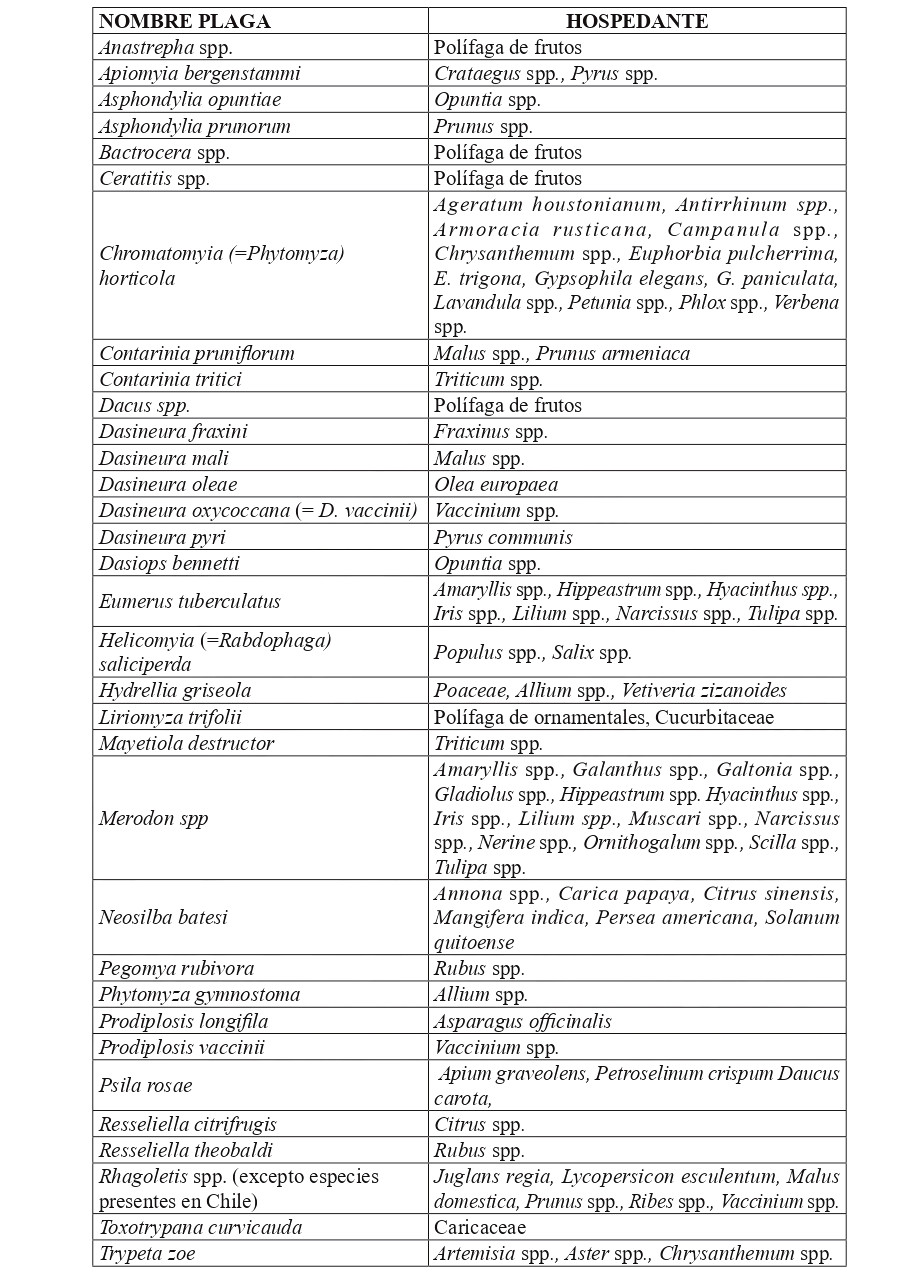 correspondiente a la lista de Plagas Cuarentenarias ausentes