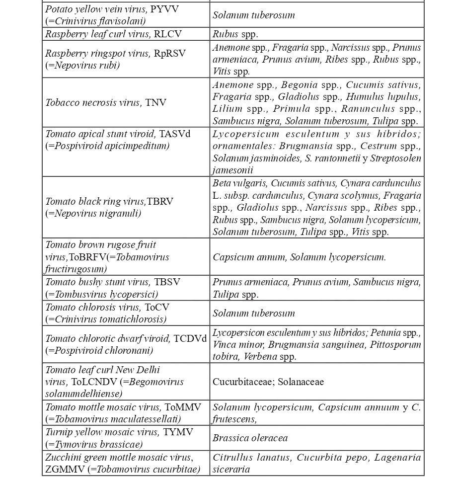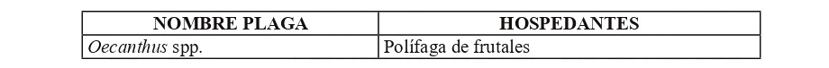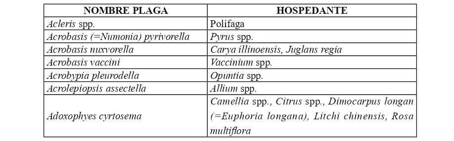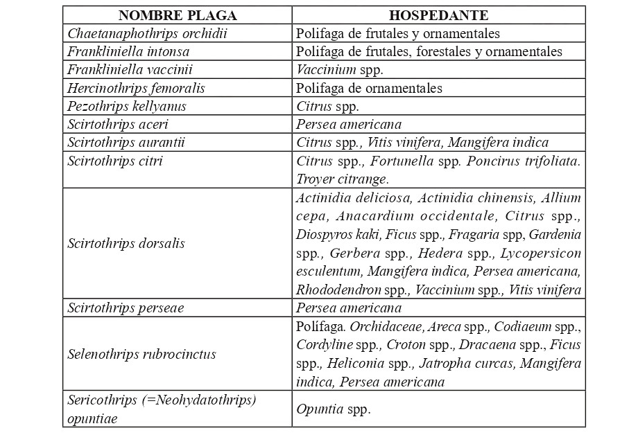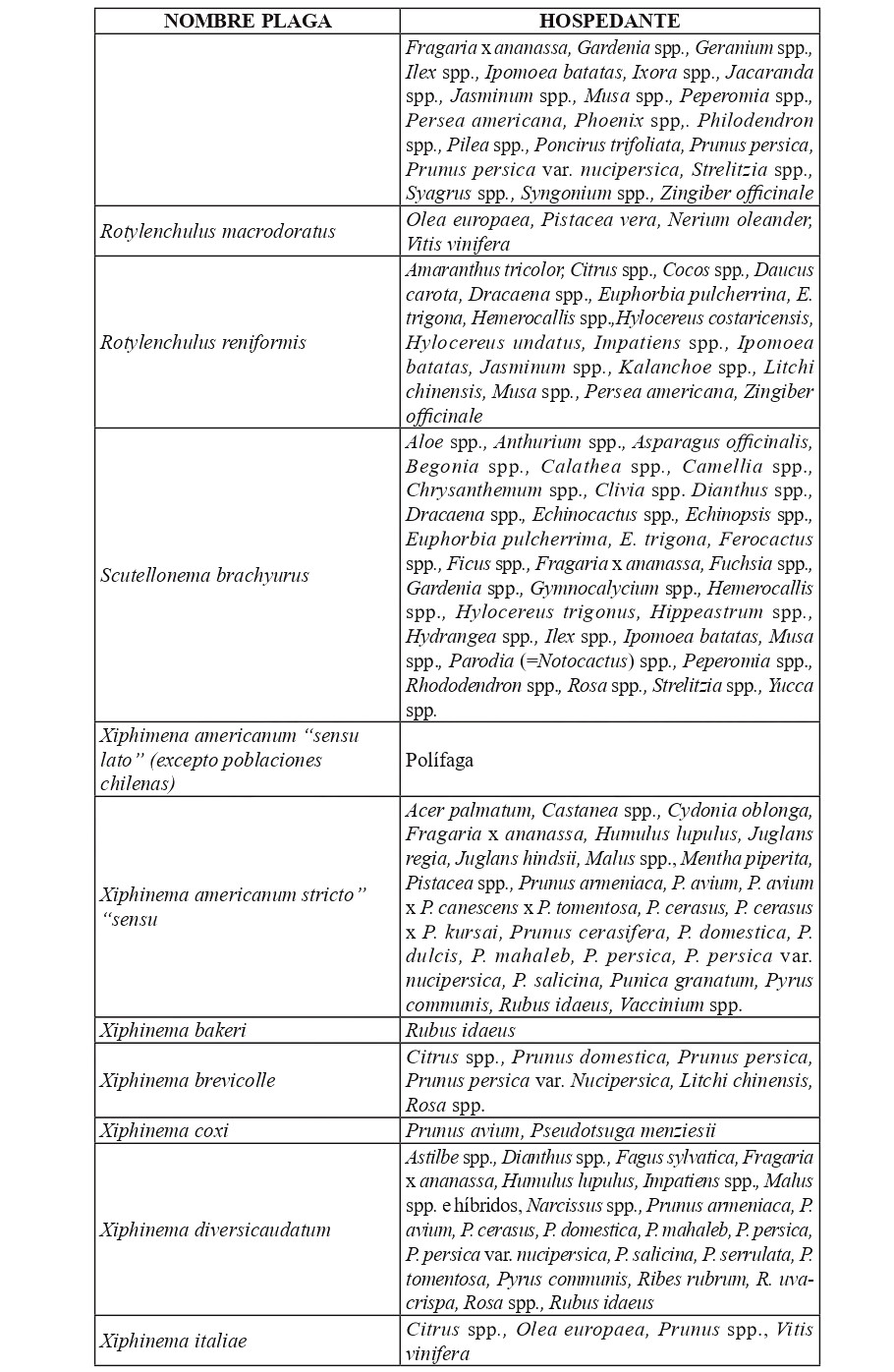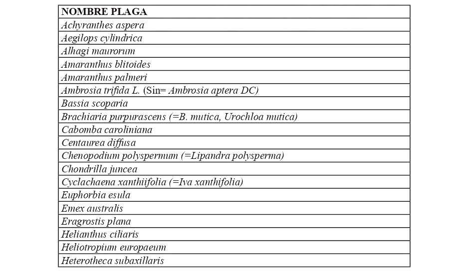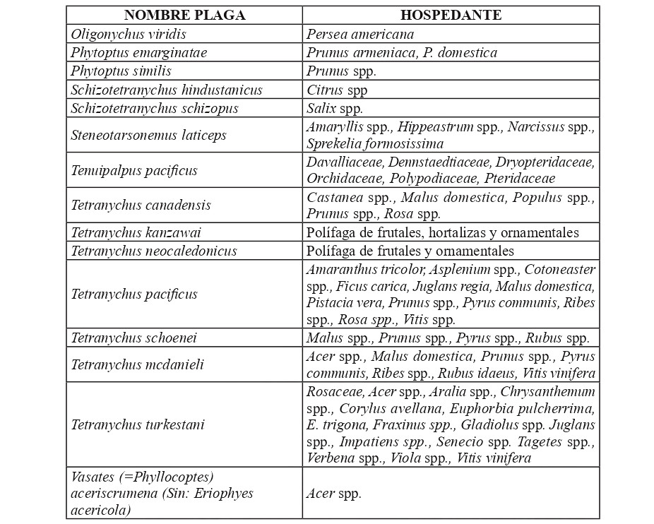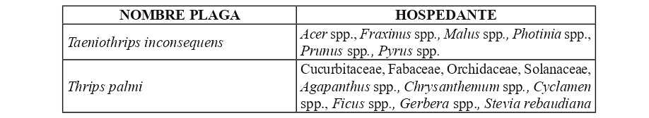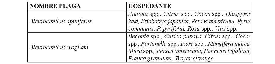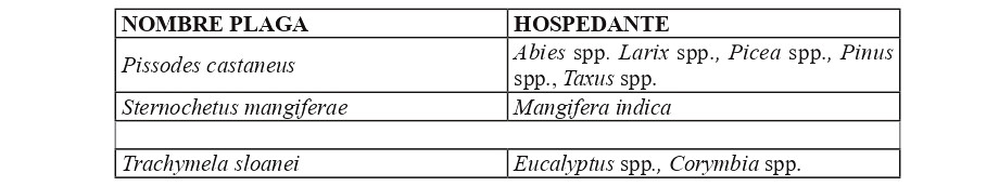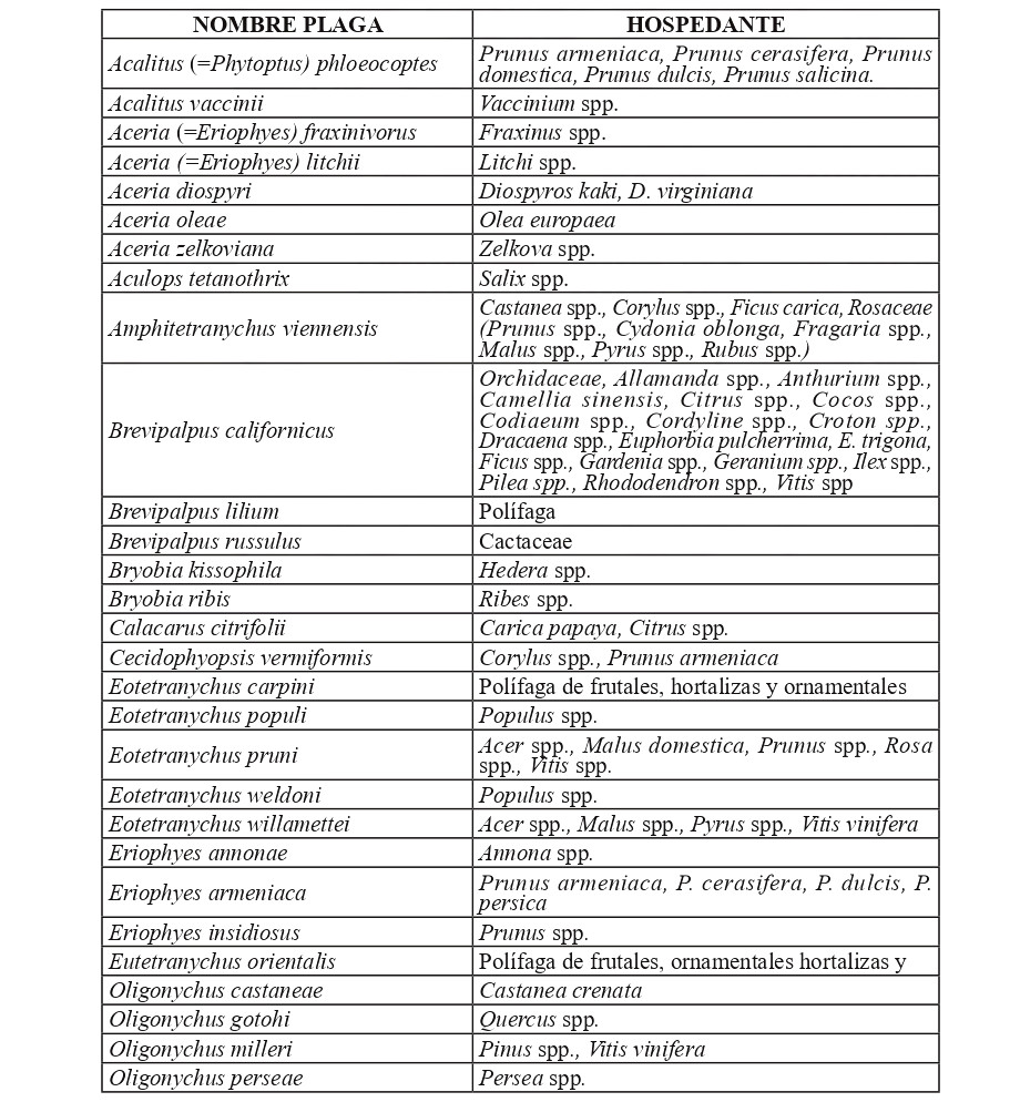 correspondiente a la lista de Plagas Cuarentenarias ausentes